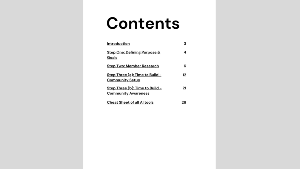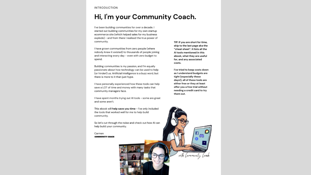 28 page PDF ebook including summary of all AI tools and how to use them specifically for community building